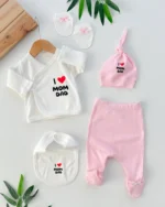 Ensemble de 5 pièces pour nouveau-né saisonnier avec ours en peluche rose et boutons-pression latéraux h